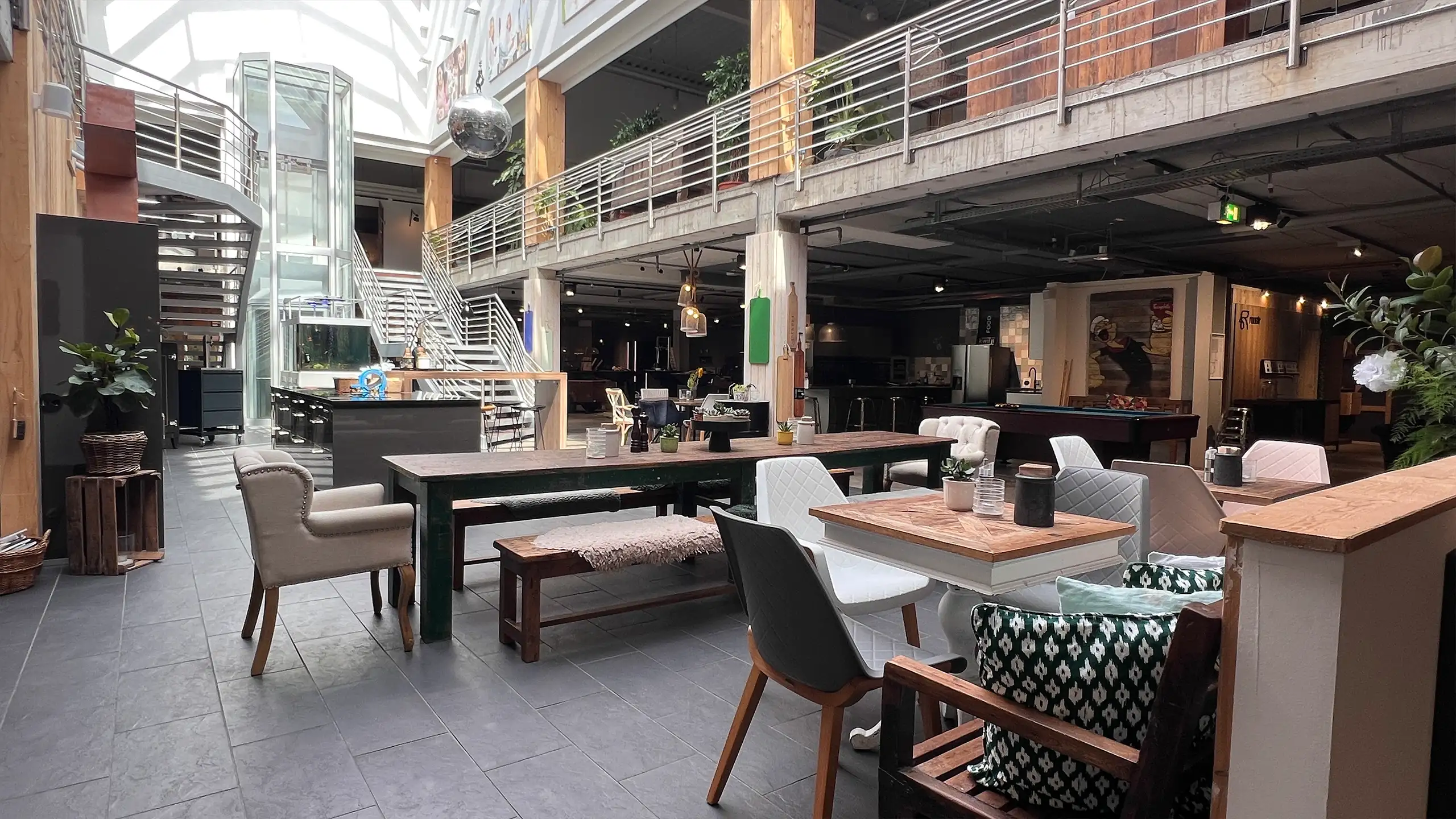 Ob Du eine Küchenparty, ein gemeinsames Kochen mit Freunden oder eine entspannte Familienfeier planst – das Atrium bietet die ideale Kulisse dafür. Ganz nach dem Kwartier 106- Motto „Die besten Partys finden in unseren Küchen statt“ ist das Atrium mit seiner offenen Gestaltung und den drei voll funktionsfähigen Küchen der perfekte Ort für kreative, gesellige und unvergessliche Momente. Die Kwartier 106-Games wie der Billardtisch, der Kicker und das Dart sorgen für eine entspannte Atmosphäre bei Deinem Event. Hier kannst Du feiern „wie Zuhause“.