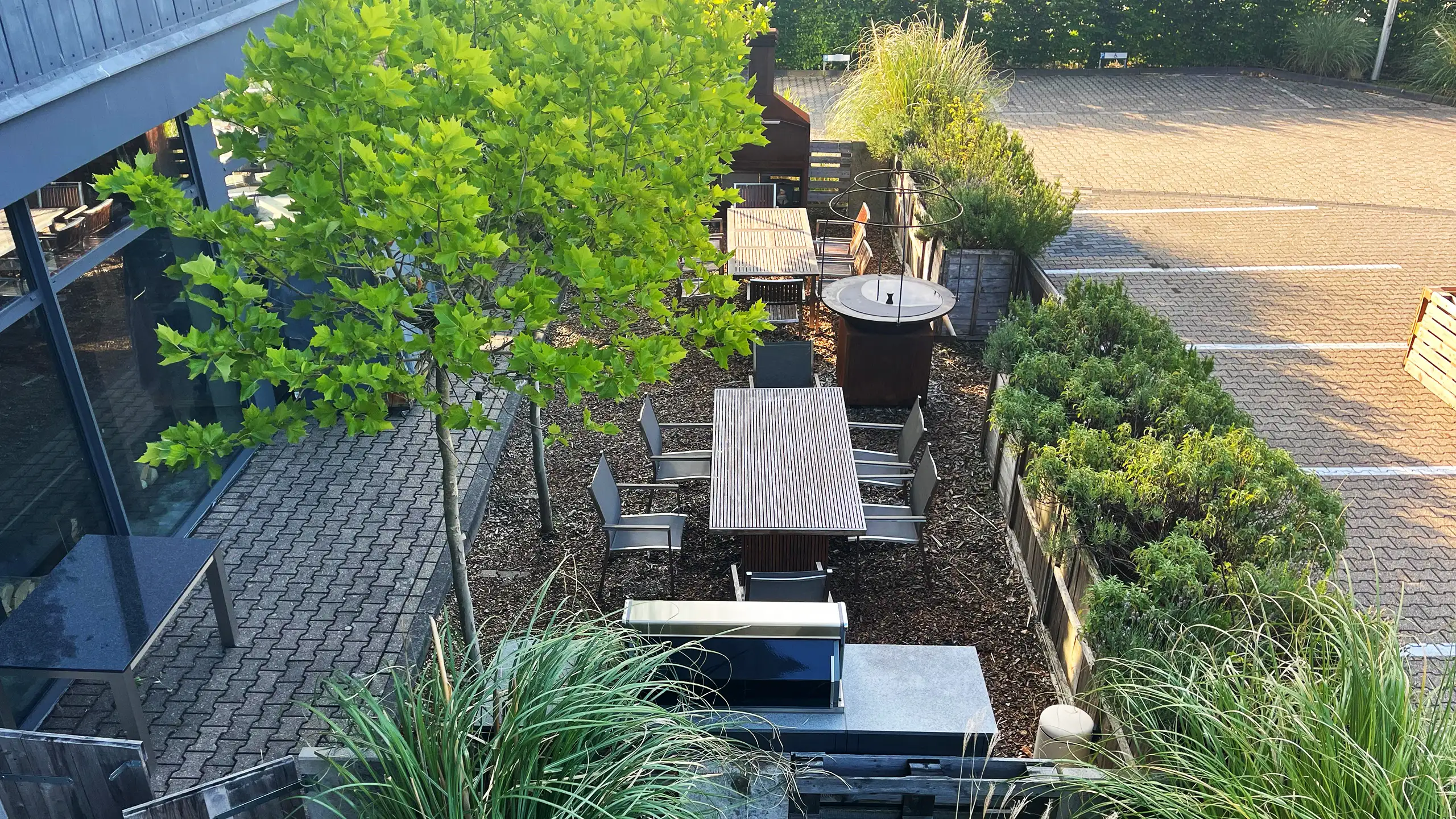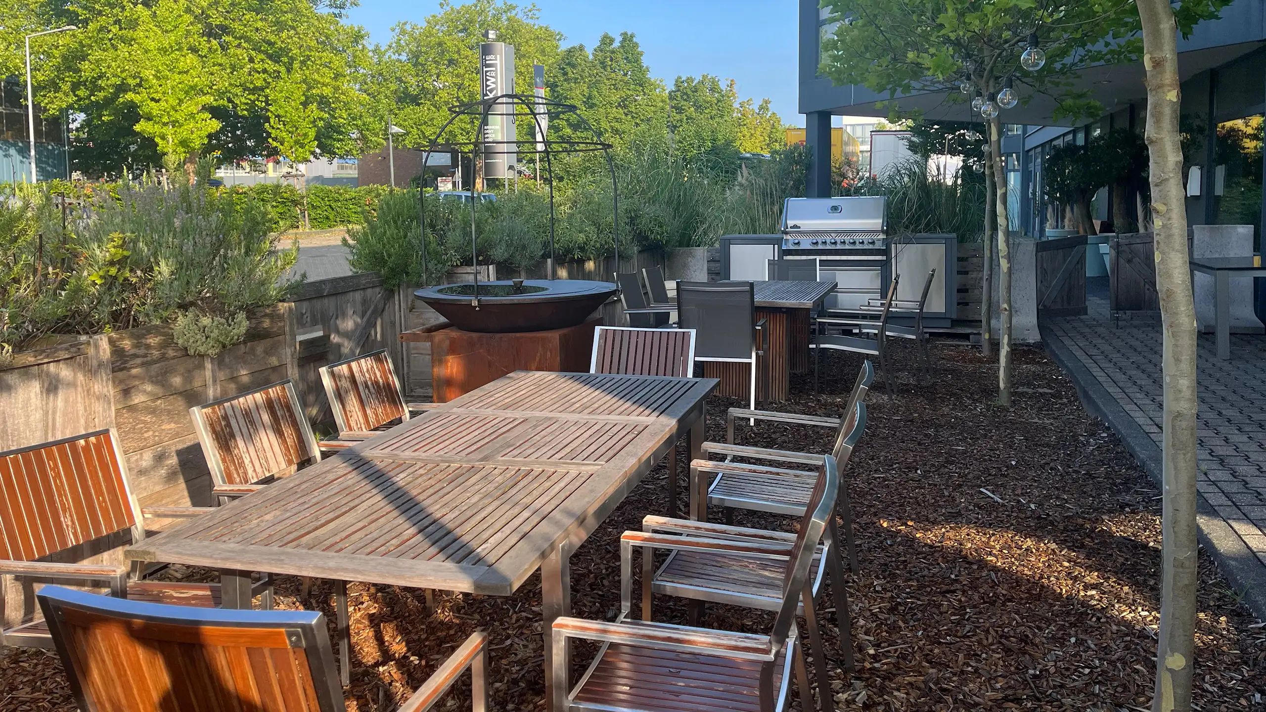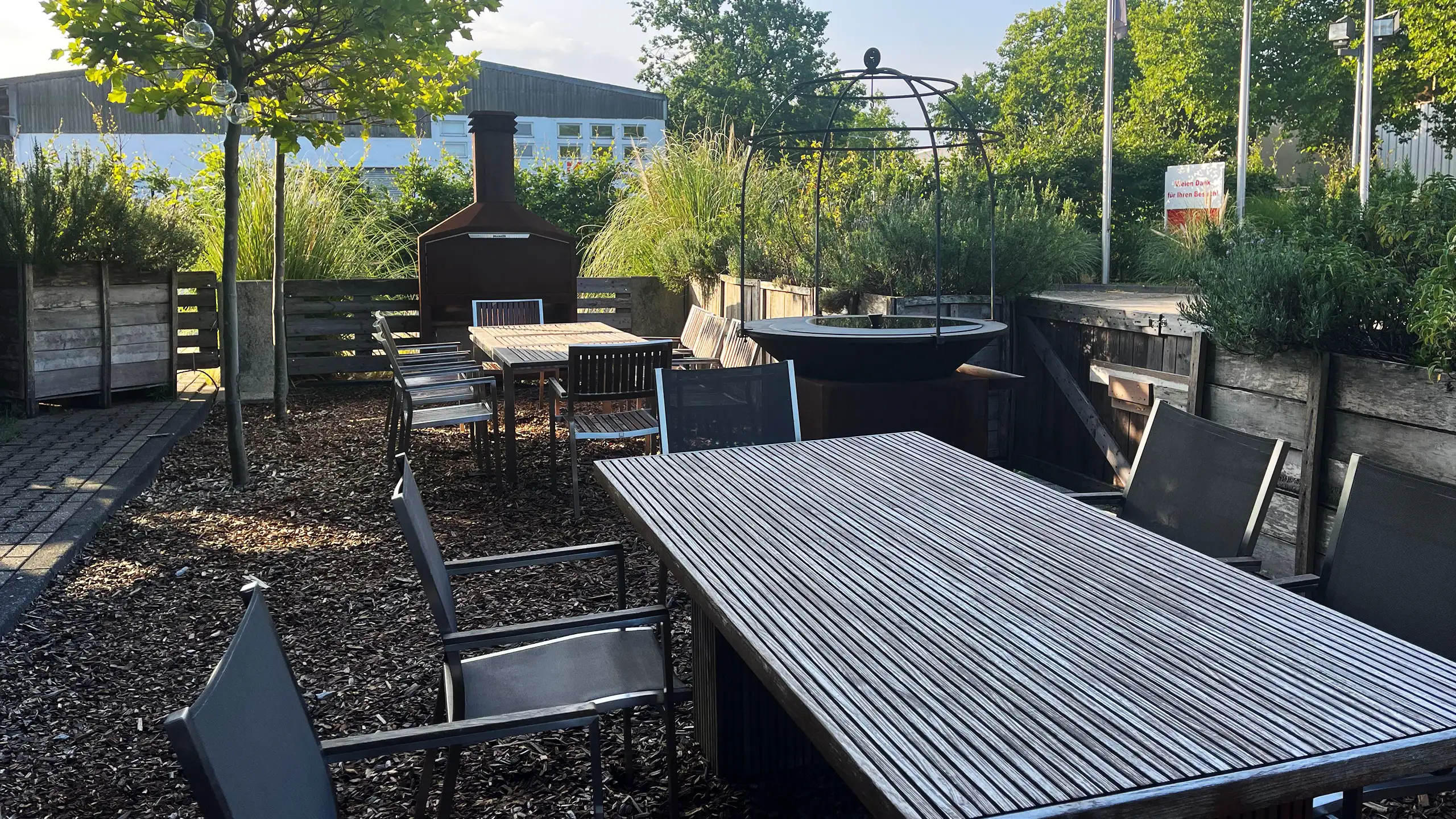 Unser BBQ-Garten lädt zum Chillen ein – gemütliche Sitzgelegenheiten, eine entspannte Atmosphäre und gute Gesellschaft machen jeden Besuch zu einem besonderen Erlebnis. Perfekt für gesellige Runden, Familienfeste oder einfach nur, um die Sonne während unseres Lunchs zu genießen. Das Highlight sind unsere verschiedenen Grills, die hier unter Feuer stehen und für leckere Köstlichkeiten sorgen.
